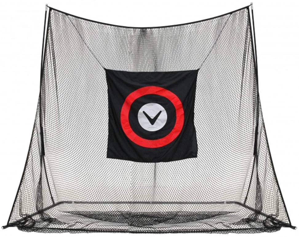 Set up your own range and practice at home with the Callaway 10′ Base Hitting Net! The large 10′ wide x 8′ high hitting area will support all your full swing training needs for every club in your bag.. The BASE Hitting Net is engineered with premium netting, reinforced fiberglass framing and a sturdy stainless steel pole base. It’s rated to catch ball speeds up to 190 mph which covers even the highest swing speeds.. The hanging target helps sharpen your focus and aim, and cradles each shot for easier ball retrieval. Assembly is fast and easy; set up and take down in 10 minutes. The net is free-standing for indoor use, and includes metal ground stakes for max stability outdoors. Use the provided nylon carry case for portability and storage.
