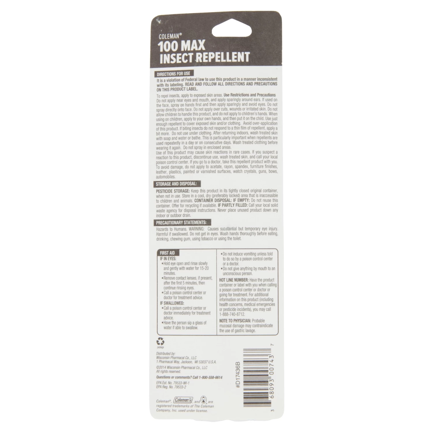 100 Max Insect Repellent Longest lasting protection available—up to 10 hours. Repels mosquitoes that may carry West Nile Virus, Dengue Fever & Encephalitis, as well as biting flies, gnats, chiggers, ticks and fleas Unscented formula