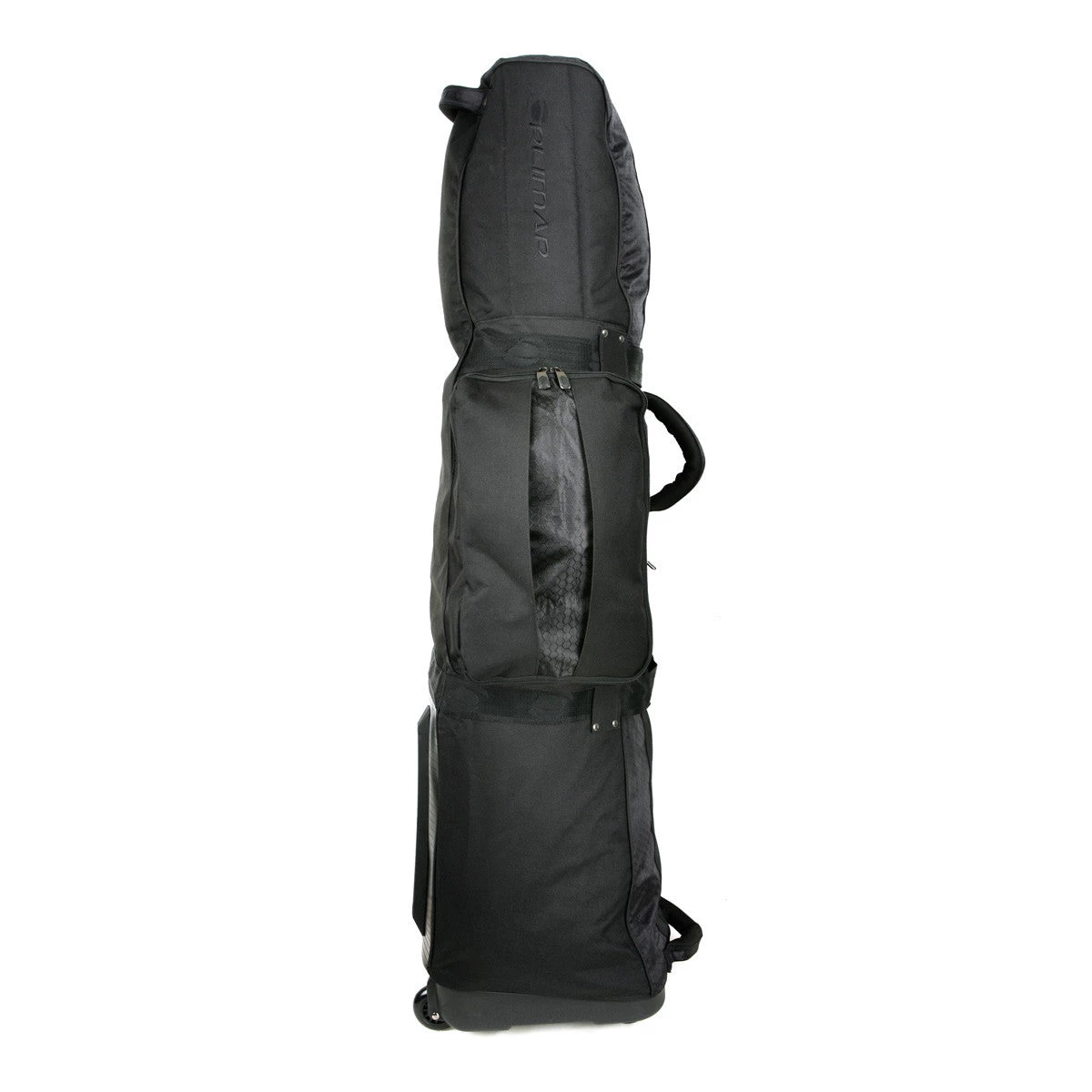 Orlimar 9.0 Premium Golf Travel Cover with Wheels feature durable 600 denier material, molded chassis with corner skate-style wheels for a smooth roll, riveted four-point lift handle, bumpers, heavy-duty large-tooth zippers, large external shoe pocket, padded club-protection top and identification holder.
