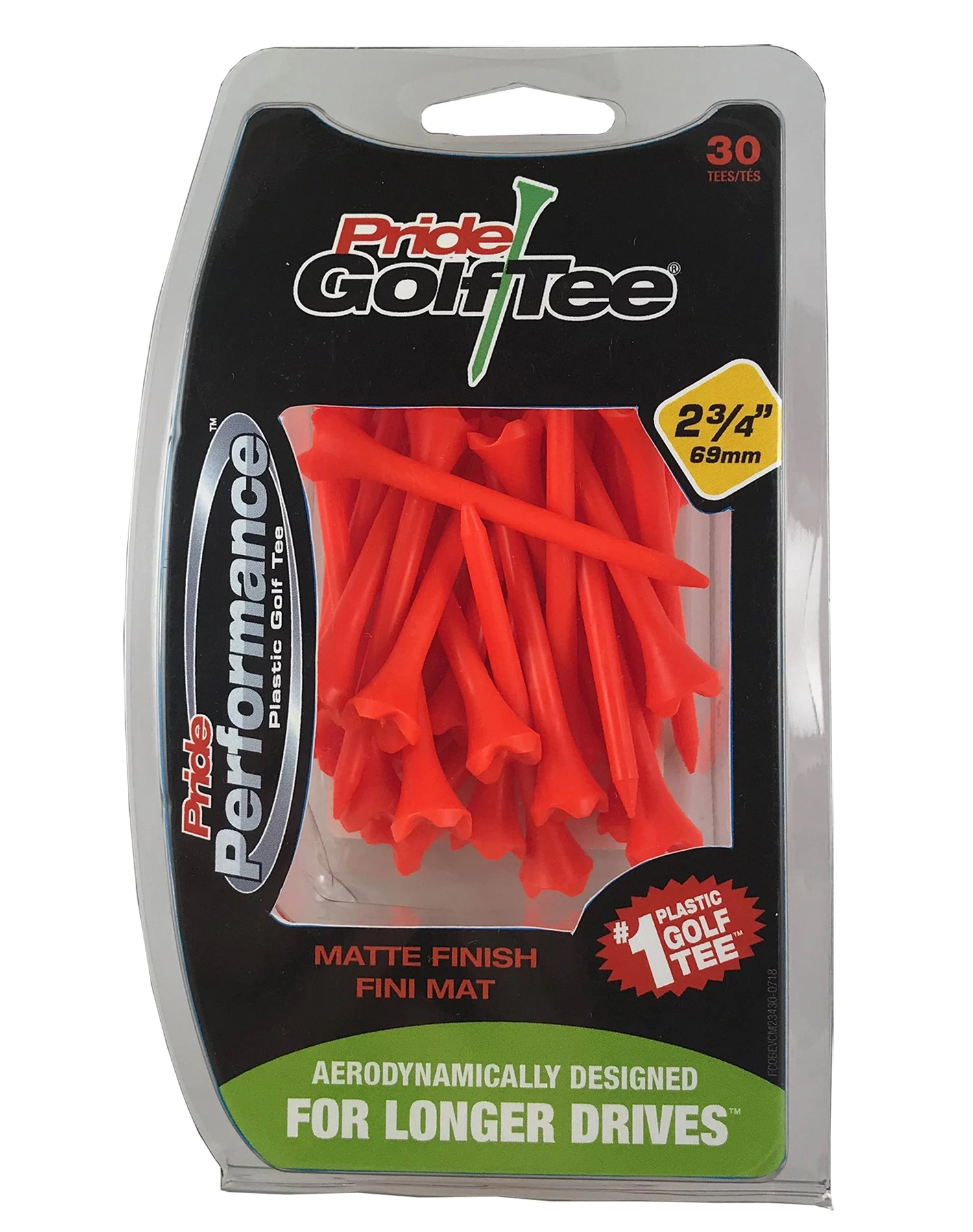 Pride Performance™ Matte Finish tees are the newest line in the Pride Golf Tee family. They are available in four bright colours: Green, Red, Blue and Orange.