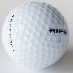 The Rife E-Motion 3-piece ball has been designed with a Progressive Motion Dual Core to fly farther, spin faster, and feel softer all while offering greater durability. Our proprietary Aeroblend Cover features Aerocontrol parallel dimple dividers for increased flight distance and stability while roll promoting dimples enhance putter feel and confidence.