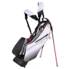 Sun Mountain Dundee Cart Bag ’23 A handsome, traditionally styled cart bag that reminds us of earlier generations of golfers, the Dundee is constructed with crocodile vinyl and has leather and brushed brass accents. TOP: 8.25″, 3-wayPOCKETS: 9STRAP: Single Strap Features: Nine pockets include a velour-lined valuables pocket, a full-length belly pocket and multiple accessory pockets. Three-point single strap with plush-lined, padded strap for carry comfort Matching rainhood included