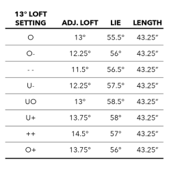The adjustable hosel allows the user to adjust the loft +/- 1.5 degrees up or down.