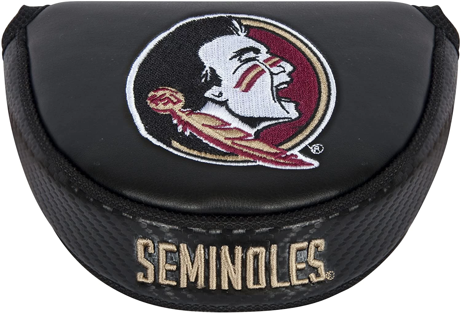 Features high quality, soft-touch, water resistant outer material and soft fleece lining. Fits right or left-handed, standard or center shaft mallet putter. Embroidered team trademarks.